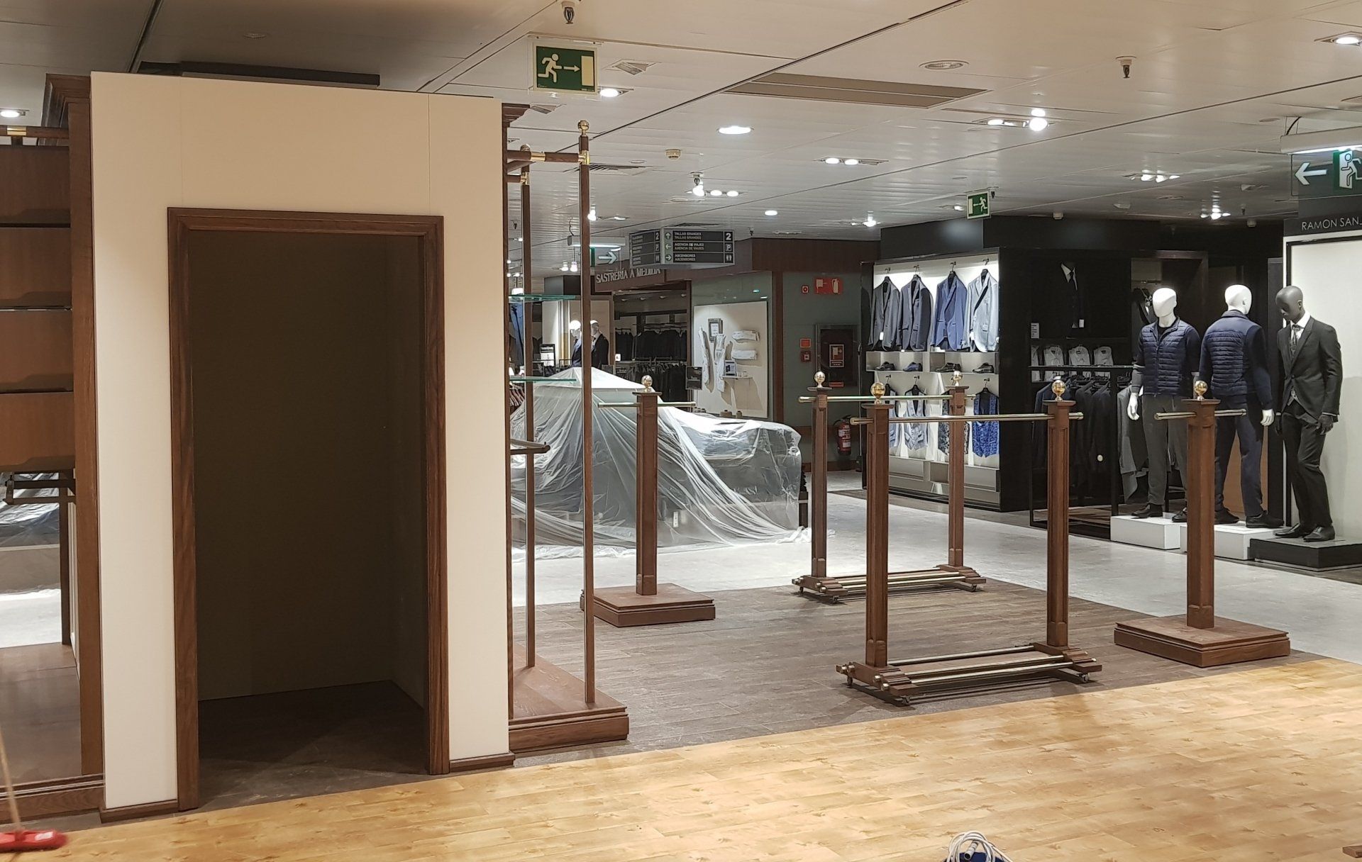 Trabajos realizados en varios centros de El Corte Ingles, fabricación e instalación de mobiliario.