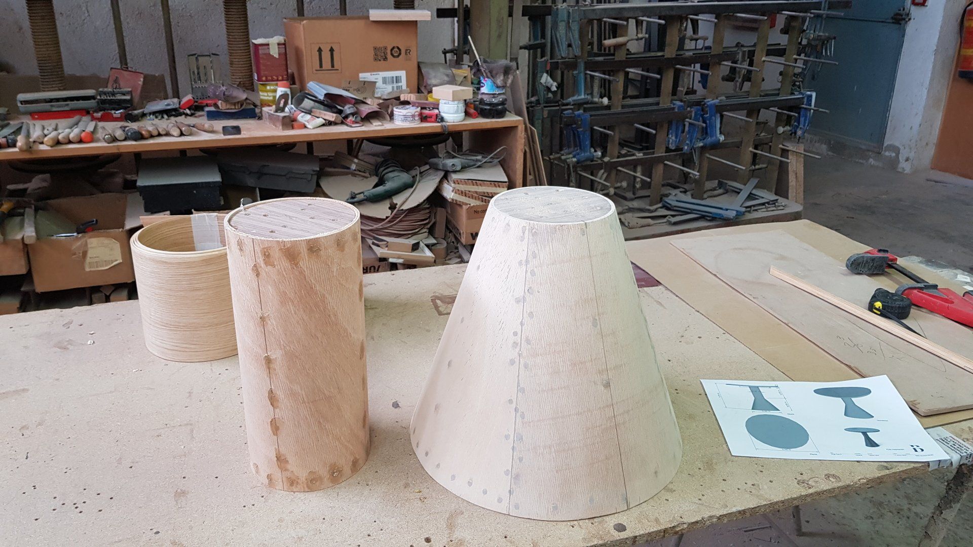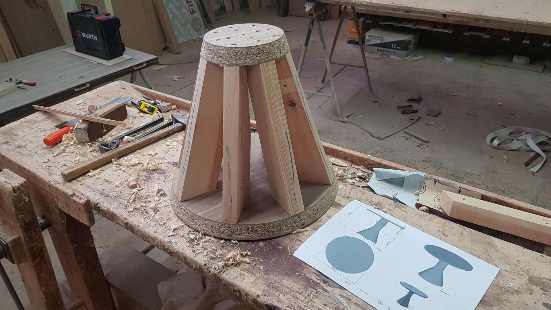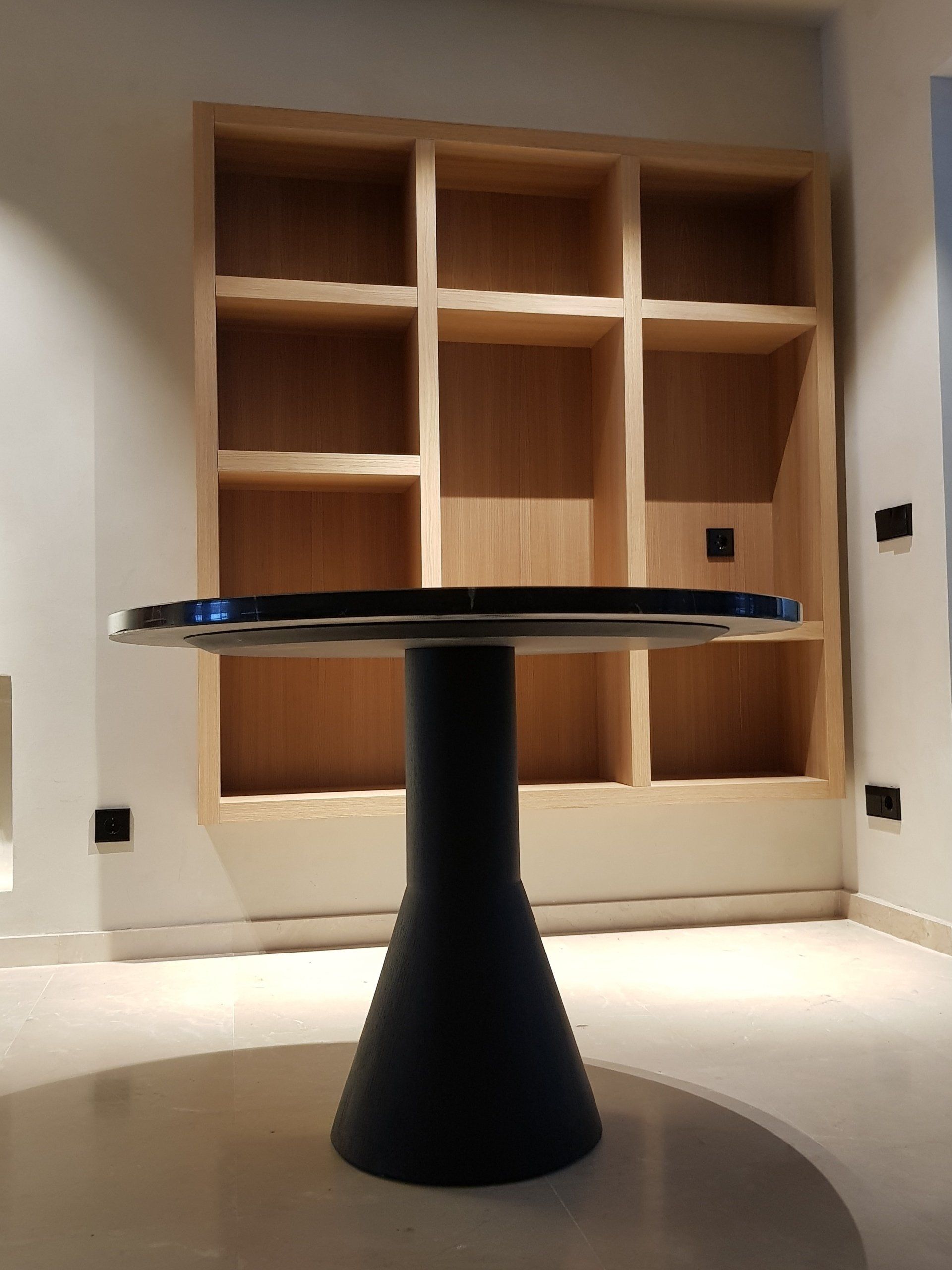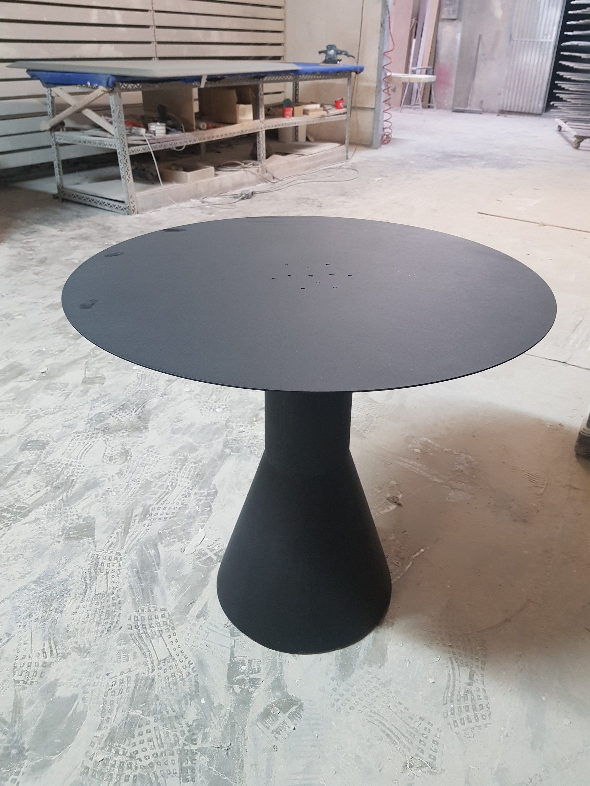 Fabricacion de mesa, con base cónica mas columna en roble teñido en negro
