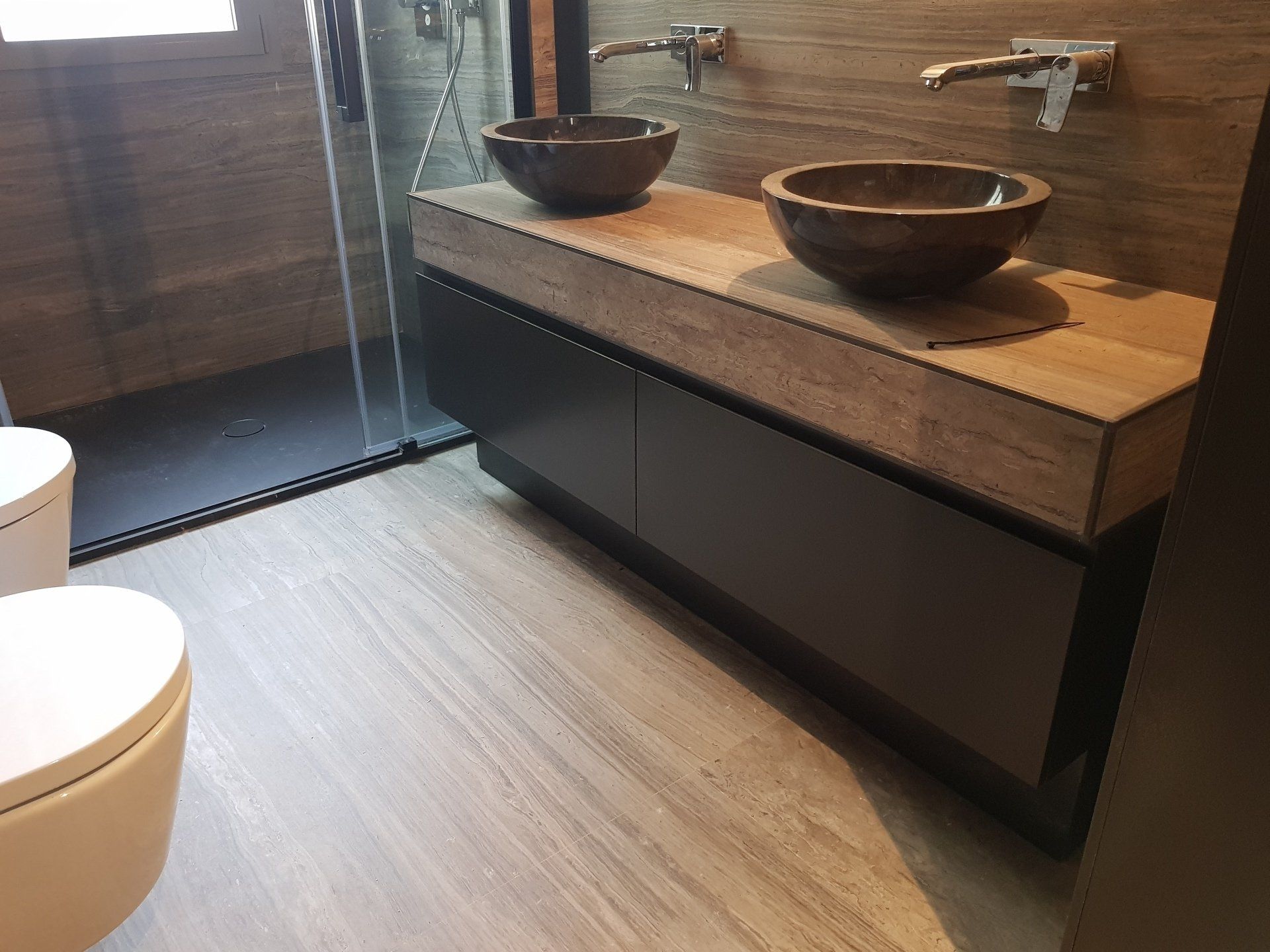 Fabricacion de mueble de baño en dm lacado, usando dm hidrofugo.